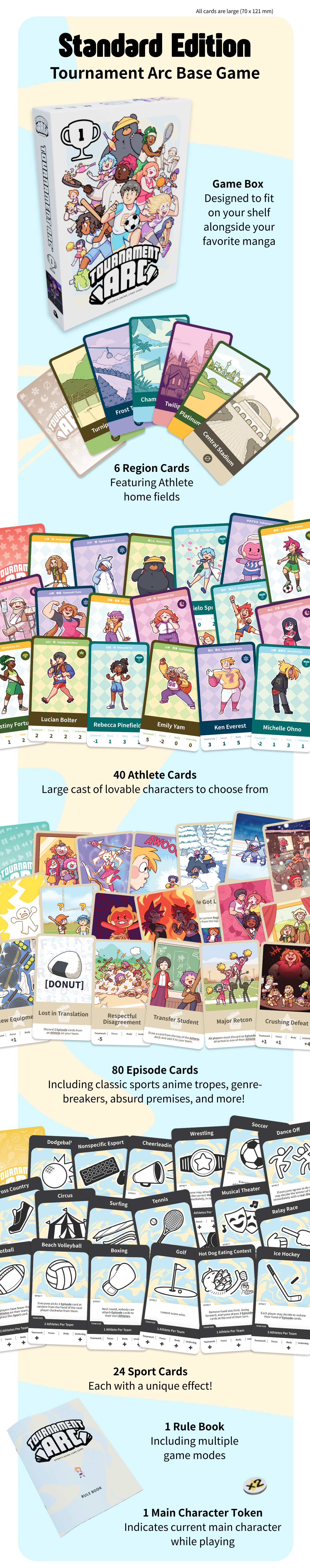 Draft, train, and compete as you build your own sports anime with friends! This delightfully chaotic party game for 2-6 players is easy to learn and quick to play.